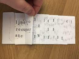 The bookwork archives language which falls upon and around the fold to consider the way in which folding disturbs the surface of language within written letters. My work considers ‘archiving’ as a critical term which, in conversation with Susan Hiller’s ‘Working Through Objects’, refers to the ‘excavation’ and piecing together of fragments to establish a reconstructed whole.[3] I consider the bookwork to be an archive in itself, collating a history of movements and manipulations made onto the space of the page, alongside anticipating further folds and creases to be enacted by the reader.