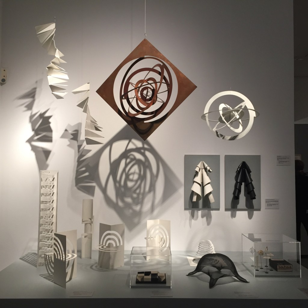 At the Berlinische Galerie, the Bauhaus’s famous preliminary course takes centre stage, giving the exhibition a fresh, experimental quality. The students’ exercises are on display, including a piece of fabric patterned through repetitive use of a typewriter, many drawings and collages, and a number of impressive reconstructions of three-dimensional mixed-media models. A multi-media workstation in the centre of the exhibition allows visitors to try out some of the techniques, manipulating shape, colour and light. Interactivity in museums is sometimes difficult to get right, but the set-up in this case was genuinely engaging, with visitors of all ages clamouring to be Bauhäusler for a few moments.