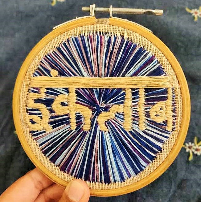 About: Rubina Singh’s needle has a point. And that point is often a form of resistance as well as reflection on our world. She is a craftivist from New Delhi. ‘Craftivist’ is a portmanteau of ‘craft’ and ‘activist’ and is something that aptly defines her practice where she plays with the craft of embroidery and other textile arts within social justice work. Being trained in Law as well as Design, she strings these two passions together into rights-based textual textile art while also engaging with the subversive feminist histories of embroidery and her inherited love of the craft of ‘Phulkari’.