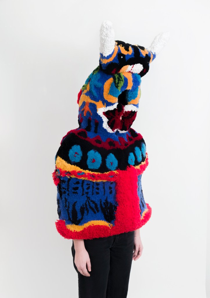 Drawing on personal experience and folkloric myths, Anna Perach uses a traditional craft technique called tufting to create wearable sculptures that come to life during performances in front of a live audience.