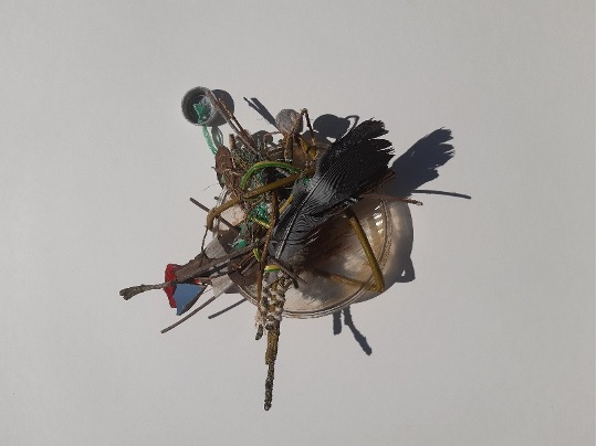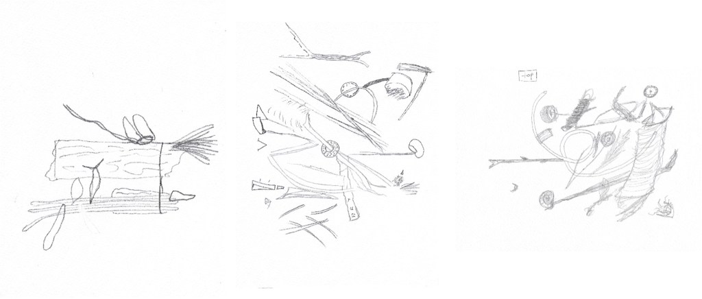 Using Albers’ words as a starting point, I created a conglomerate object from found materials whose textures and shapes I was drawn to, and placed this object in a bag. I passed this on to my first collaborator and asked them to feel inside the bag. Their task was then to draw what they feel. After this, they could remove the object from the bag, add their own found materials to it, and then return it to the bag, before passing it on to the next collaborator to repeat the process. In this way, the object passed along a chain of collaborators and I was left with a series of haptic drawings mapping its evolution and a final conglomerate tactile trash object.