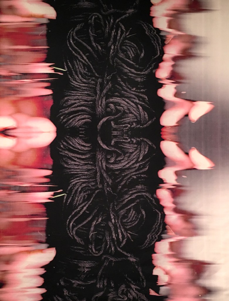 I stop inking the rollers, take up wrapped stems and roll them the length of a scanner bed trying to keep time with the scanner’s eye. As I do this my pink fingers come to frame the image, crisp moments alongside that which I am wanting the camera to pick up. I keep these pink fingers in the frame.