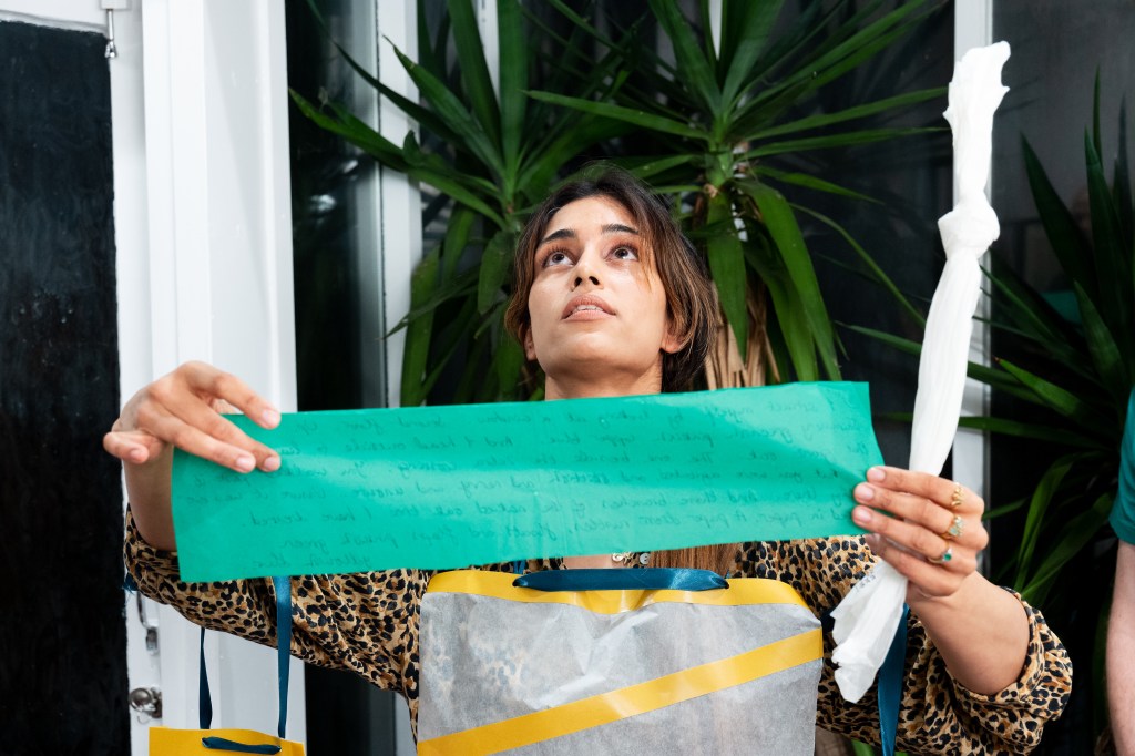 Recently, Papachristodoulou has been making poetic protest banners, which she takes on demonstrations. Banner poetry, she says, “is the coming together of poetry and protest banner literature, and stands as a societal intervention, as a reflection of one’s position in relation to social and ecological issues. It has the potential to destabilise canons, making the production and consumption of poetry more accessible and making room for healing through stitching and repurposing. There is something about being present, bodies chanting together, using language and gestures to express common ideas, that projects alliance – there are elements of unity and strength in physicality.”