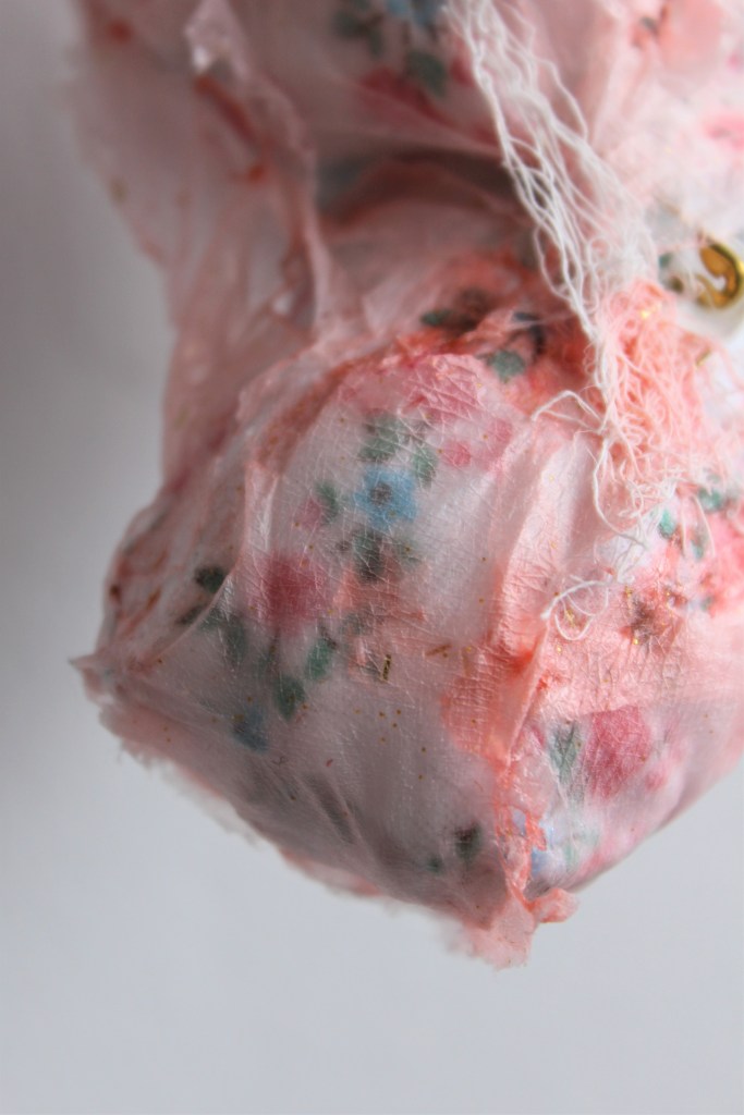 TT: Gravity, similar to the pins used to hold these works together, is an ambiguous force that both oppresses the body and gives it form. I also like how exposed a hanging sculpture is. When one of these objects is hung from the ceiling, every angle is exposed to the viewer, unlike a work that lives on a wall or pedestal. I also appreciate the sense of “unfixedness” in a dangling object.