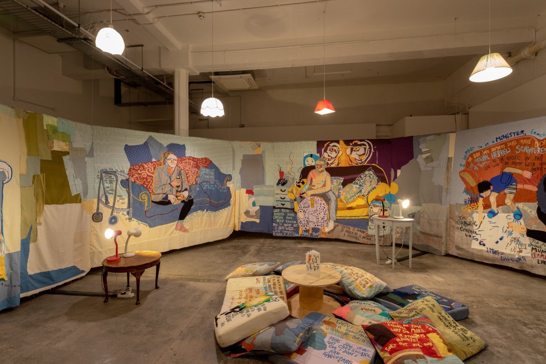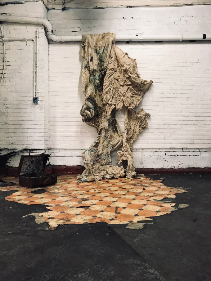It is Hull-based artist Ella Dorton who blurs the lines between the gallery, the community, and the domestic with her striking fabric works. In a recent exhibition, she turned the Humber Street Gallery into a space that ‘you could relax, sit down and feel at home in’. Her domestic portraits draw parallels between the ‘worn-out-ness of the fabric’ and the ‘worn-out-ness of peoples’ homes and lives’, using the intimate setting of the interior to explore broader socio-political issues. In an interview with Lottie Whalen, she discusses making art that creates material and conceptual connections between the domestic and the global, situating personal narratives within the context of broader political crises.