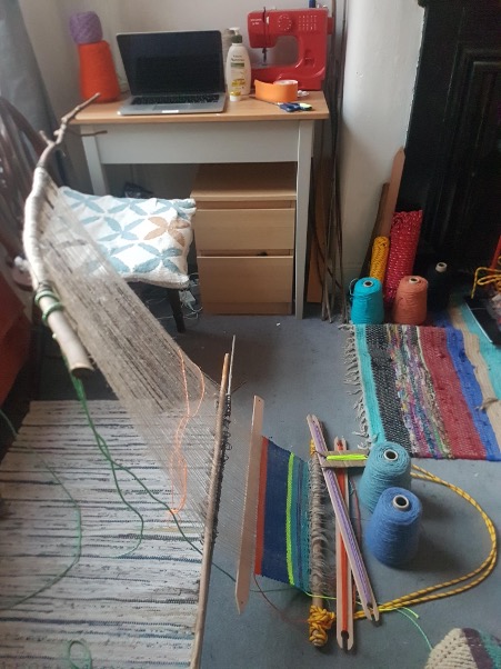 Towards the end of the long three months, before I was able to move nearer to my studio, I developed a rigid heddle loom that could be used for others to access weaving with less tools, to share innovative low tech ways to craft cloth. Breaking down the barriers to a craft that seems shrouded in expensive equipment and tools. We have all we need at our disposal. This sharing of knowledge, of how to create out of what we have around us, is all that we need to equip ourselves with.